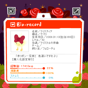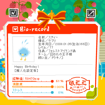 クリスティア お誕生日おめでとう^▽^(おせぇ! 本当、私この子達の飼い主でいいのでしょうか← とにかく…これからも元気に育ってくれたら飼い主的には すっごく嬉しいよ!← と言うか、音沙汰なくてすみません。 バイトがね…入れられすぎてもう どうしようかと… だれか、ちょっと店長をやっつけてください。 本当困りますよー ワタシ睡眠イチバンダイジデスネ。 睡眠ナイトコマリマスアルヨ。 とまぁ…今日朝9時からのバイトで本当に疲れています。 おまけに来週は週5ですし、最近ちょっと店長が嫌いになってきたんです ハイ。 ワタシ基本人嫌いじゃないですよ。 自分に良くしていただける方なんて 嫌いになれません ですがね、最近こうちょこちょこと イラっ^^# って来る時があるので… あとお客さんにもマナーなってない方いますしね。 妊娠中に平気でタバコ買う人の気持ちがワタシには分かりません 最低の行為だと思います。 しかも、外で普通に吸っている姿を見たら ちょっと殴りたくなります ハイ。 まぁ、ワタシの偏見なのですが、ね…! ―――――* そうそう、最近絶賛鬱期突入なんですよ、笑 あるんですよね、2.3ヶ月に一回の割合で…。 ちっくしょう、おみくじ大吉じゃなかったのかいっ! あ、でも…年賀状で癒されています イズルさん、嫁、Kにくおんにそれからいろり、 ありがとうございます!! 最近の自分の癒しですよ~もう眺めたハスハスしています。 自分の所は、ちょっとツンデレパソコンがツン発動したので 印刷できず出来上がったのを明日出す予定です 遅れてすみません 本当、新年明けたくせにgdgdなどくきのこを弄ってやってください(黙 私信イズルさん>> 年賀状ありがとうございました!とっても萌えました…! あ、微力ながらですがタリマくんにフサ虫をちょいちょいあげていました! かわいいモグモグすがたごちそーさまです← ワタシの年賀状すんごいしょぼいんで今度何か書かせて下さい…!(またかっ) あ、あと許可無く誕生日に頂いた絵を飾っちゃいました!スミマセ かわいすぎて手がかってに… ダメでしたら、もうクレーム大歓迎です! 嫁(るみちゃん)>> 年賀状ありがとう…!大いに萌えましたごちそうさまv← 携帯の方にちゃんと届いてます!本当亀レスで申し訳ない。 明日とかあたりにはメール届くと思いますいやとどかせます← 気長に待ってやっててくださいoyz(ダメ人間) |